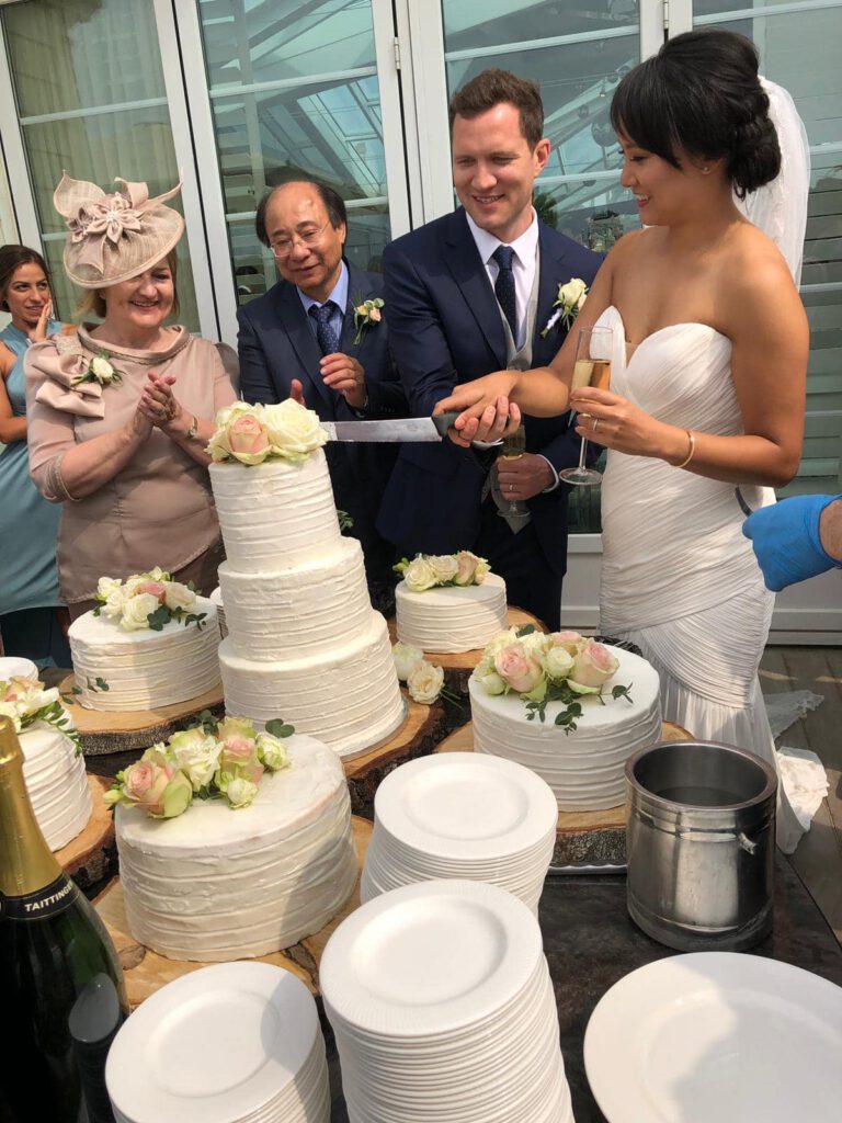 De onderstaande prijzen zijn gebaseerd op een bruidstaart met reguliere decoratie. Extra handgemaakte decoraties, specifieke bloemen, taarttoppers of extra vers fruit kunnen de prijs per persoon beïnvloeden.