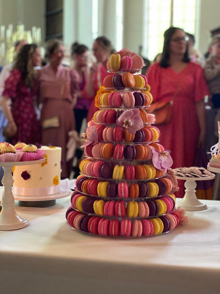 Naast bruidstaarten zijn wij gespecialiseerd in het verzorgen van Sweet Tables en indrukwekkende Macarontorens. Informeer naar de mogelijkheden voor een zoete invulling die exact bij jullie dag past.