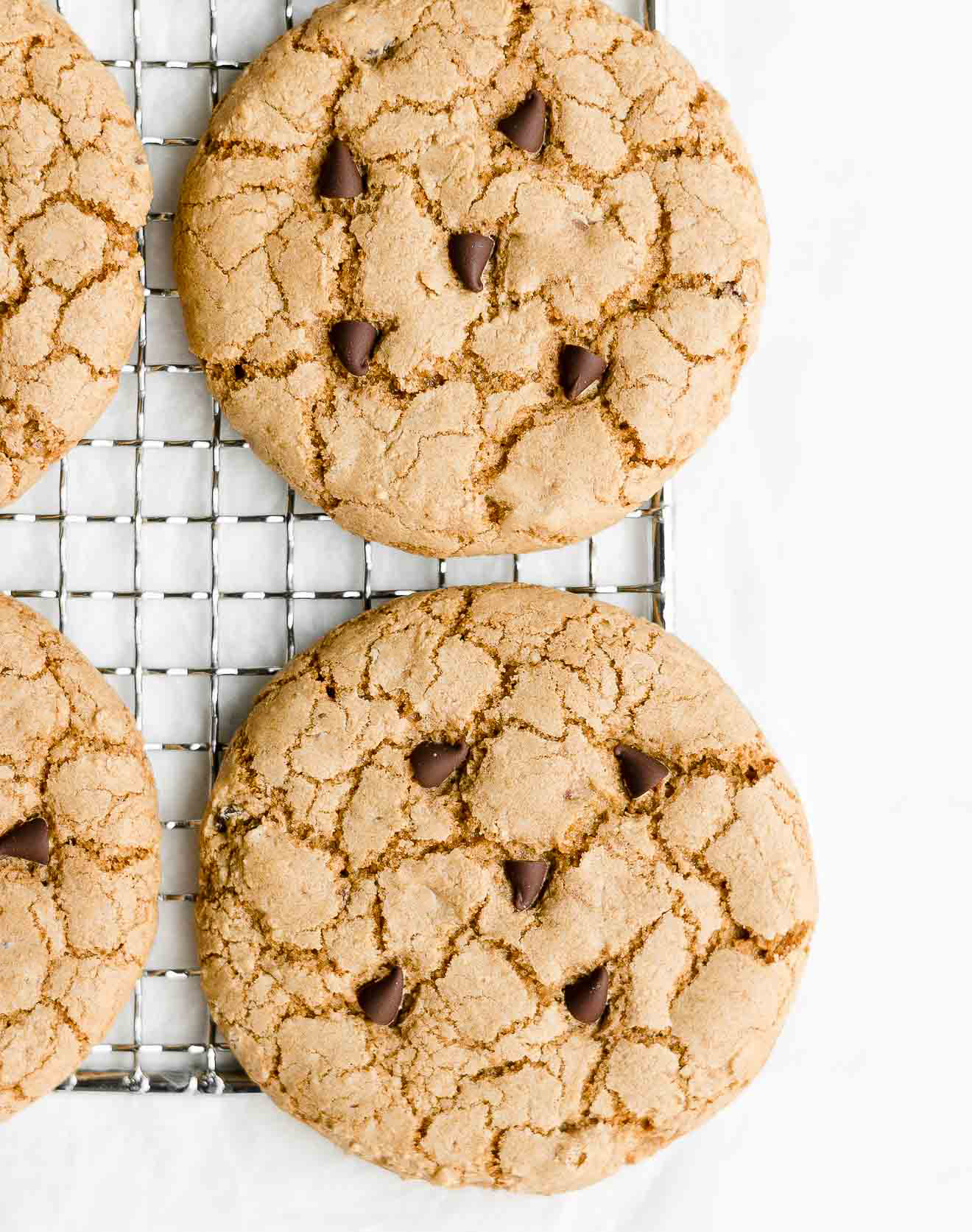 Dit zijn echt de beste gezonde krokante chocolate chip cookies die ik ooit heb gegeten! Ze zijn perfect knapperig, heerlijk zoet en zitten vol rijke chocoladestukjes. Restjes blijven minstens vijf dagen goed als je ze in een luchtdichte doos bewaart—als ze zolang blijven liggen! (Je kunt ze ook goed invriezen.)