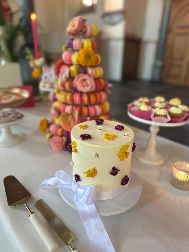 Een rijk gevulde desserttafel met verschillende mini gebakjes, afgestemd op jouw event.